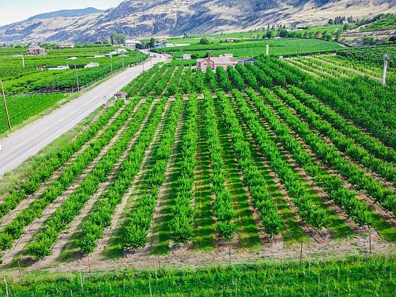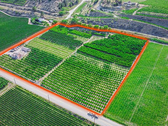 Excellent Vineyard location, as surrounded by Vineyards on all side. Excellent slope from top to bottom and Fan on site is never used! 9.6 acre mixed orchard on Hwy 3 with high Exposure and in the Heart of Wine Country with current plantings include: Satin Cherries (1.1 Acres), Skeena Cherry (3/4 Acre), Cristalina Cherry (0.8 Acres), Benton Cherry (1/2 Acre), Lapin Cherry (2 Acres), Ambrosia Apples (3/4 Acre), Cresthaven Peaches & Glohaven Peaches (1/2 Acre), Glohaven (1.48 acres), Red Haven Peaches (1/2 Acre). 1940 substantially renovated Home including new kitchen, windows, flooring, and a master bathroom added. Basement is ready for your ideas for an additional living area and bedroom if desired. Separate entrance and lots of potential. Duplicate listing: Single Family MLS 195603