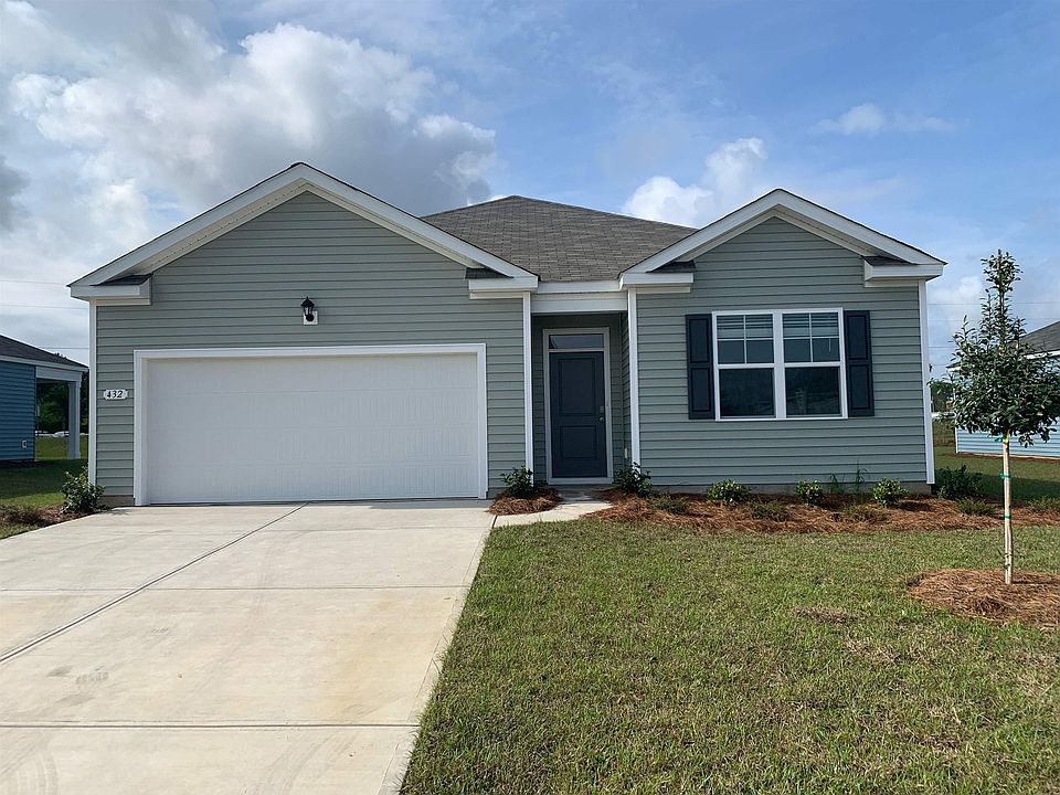 Welcome Home to Olde Mill.  This quiet, boutique-type community is conveniently located off Highway 90 between Highway 22 and International Drive with easy access to Highway 31 and Highway 17. Approximately 15 minutes to the Beach, Barefoot Landing, Tanger Outlets, plenty of shopping and dining and 20 minutes to Carolina Forest. Pond and Wooded Lots are available. Our Cali plan is a thoughtfully designed one level home with a beautiful, open concept living area that is perfect for entertaining. The kitchen features granite countertops, an oversized island, 36" white painted cabinetry, a walk-in pantry, and stainless Whirlpool appliances. The large owner's suite is tucked away at the back of the home, separated from the other bedrooms, with a walk-in closet and spacious en suite bath with a double vanity, 5' shower, and separate linen closet.  Spacious covered rear porch adds additional outdoor living space. This is America's Smart Home! Each of our homes comes with an industry leading smart home package that will allow you to control the thermostat, front door light and lock, and video doorbell from your smartphone or with voice commands to Alexa.   *Photos are of a similar Cali home.  (Home and community information, including pricing, included features, terms, availability and amenities, are subject to change prior to sale at any time without notice or obligation. Square footages are approximate. Pictures, photographs, colors, features, and sizes are for illustration purposes only and will vary from the homes as built. Equal housing opportunity builder.)