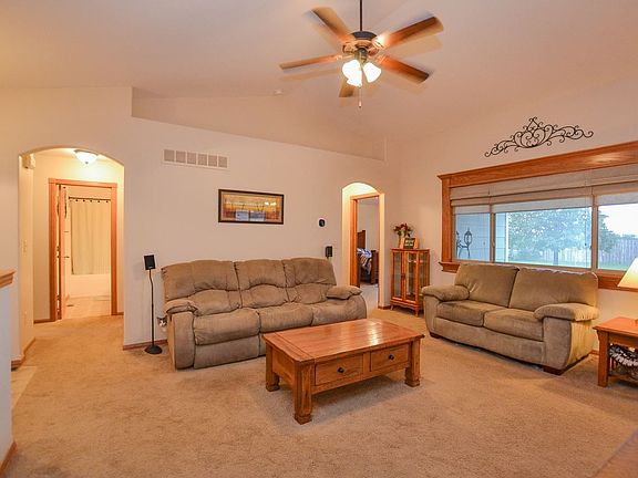 Extra nice is one way to describe this lovely home with split bedroom plan 3 bedroom, 3 bath. Triple window in living room allows lots of light and looks over the spacious backyard. Master bedroom also with triple window and ensuite bath, jetted corner tub with separate His and Her Vanities, nice sized walk-in closet. Separate room for 4ft shower and water closet. Just off the living room is the kitchen with beautiful Oak cabinets 42" tall, plenty of room to store the dishes and the cookware. Lots of counterspace for making cookies and a bar top eating space as well as a small desk area. Good sized dining area with sliding doors to the patio. East facing back yard, full privacy fenced with gate on south side to allow entry of a regular vehicle. In the basement is a huge family room with gas fireplace and office area, 3rd bedroom and bath. Room for 4th bedroom is studded for finish. Also plumbed for laundry. Main floor laundry is separate room off the kitchen. The garage is 3 car but the 3rd bay is 29' deep. So plenty of room to back in the boat or workshop. There is a bird named Screech and two cats. Please do not let out.