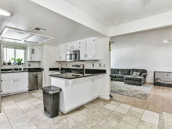 Great starter home that was remodeled in 2016. Laminate wood floors, ceiling fans and lots of natural light. Updated kitchen with white cabinetry, black granite counters, stainless appliances and tiled floors. Kitchen bar area for extra seating. French doors to back yard with covered patio. All good size bedrooms. Updated bathrooms with new vanity and flooring. Cute & Cozy! You don't want to miss this one.