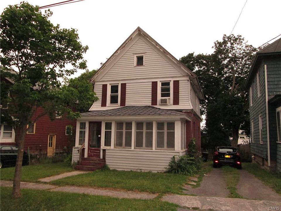 OPPORTUNITY IS KNOCKING!! Here's your chance to own a cute & cozy home with a fully fenced in backyard & deck that's cheaper than renting! Two bedroom, laundry on first floor, mud room off backyard, enclosed front porch with exposed brick, and a full walk up attic!! Improvements: New metal main roof, insulation, sheetrock, & electrical upstairs. Call today for your private showing! Won't last long at this price!!