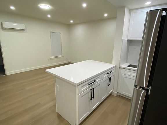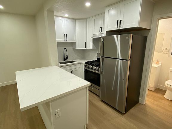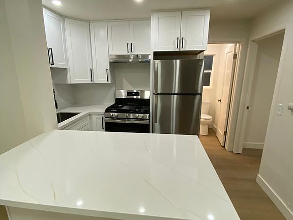 Spacious and freshly renovated 1-bedroom, 1-bath unit featuring new vinyl flooring, fresh paint, and recessed lighting throughout. The modern kitchen offers new stainless steel appliances, quartz countertops, white shaker cabinets, and a sleek black faucet. Bright bedroom with ample closet space and updated bathroom with new shower, vanity and fixtures. Water and garbage included. Conveniently located near parks, shopping, dining, and freeway access. Owner pays for water and garbage.