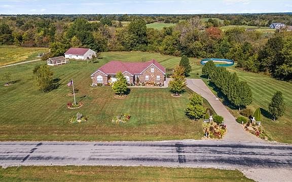 One owner Ranch house built in 2011 with full finished basement on 5 acres with outbuilding and green house. 3 bedrooms on the main floor, 1 bedroom in the basement and 2 nonconforming bedrooms in basement so yes 6 rooms total for your large family. Best part is master is on separate side of house so you will have your own private area with jacuzzi bathtub and large walk in closet. Kitchen has large pantry for all of your grocery storage. Granite counter tops with wood countertop cutting board that can be easily removed for cleaning. Upstairs carpet was replaced in February with upgraded pad. Basement has commercial grade carpeting to be able to hold up to family play. Basement is so big you can have a family room and game room with space still left over. Outbuilding has electric and water and approximately 1440 sq feet. Green house with water and electric has produced fruits and vegetables year around. There is a stream in the trees that a one point owner was thinking about doing a pond in the woods. Lagoon has rock around the perimeter to make it very low maintenance. For the holiday lights people house has electric in the yard and near the roof with a single switch control in the house. The laundry room has storage and countertop area for all of you laundry needs. Washer and dryer will stay with home. I don't think you will find a better more maintained house. Majority of the trees are on the property and property line is marked with RE/MAX United directional signs.