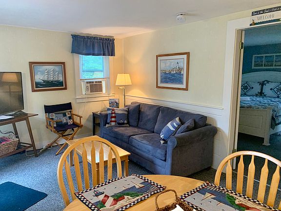 This cozy one bedroom, one bath cottage/condo is just steps to Sea Street and Keyes Beach. This sun filled unit features a newly renovated open living room, fully equipped kitchen, dining area and spacious bedroom. AC in the bedroom and living room. Many recent updates include - newer windows, carpet, siding & front door, updated kitchen and bath. It is being sold fully furnished, so you can move right in or start renting! Enjoy the lovely water views and breathtaking sunsets over the ocean from the deck. Enjoy the heated association pool from June 7th through Labor day. Everything is within arm's reach from this vacation destination, Historic Main Street, local shopping, restaurants, and ferries to the islands all within a mile. Sleeps 4 on 1 King sized bed and a Queen sized pull out sofa. This cottage has quaint Cape Cod charm that you will be sure to enjoy for yourself or take advantage of the strong rental history for some extra income!
