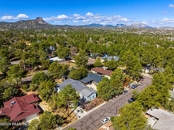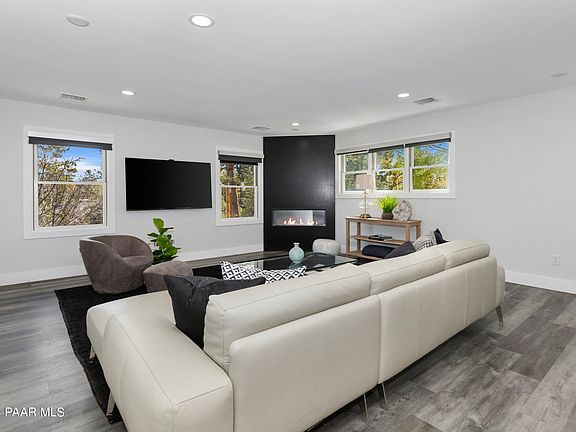 Charming home just minutes from downtown Prescott! New interior paint and luxury vinyl flooring, marble countertops and gorgeous tile work in kitchen and bathrooms. Remote control blinds throughout the home that can be programed to raise or lower at sunrise and sunset. The open floor plan provides a bright and airy feeling and the living room boasts a black granite gas fireplace for just the right ambience on those chilly winter evenings. The kitchen is a chef's dream with plenty of counter and cabinet space with pull-out shelves and newer stainless steel appliances, along with a water filtration system. During the warmer months enjoy the beautiful outdoor space with a large array of seating areas and a large gazebo area nestled in the trees and fully fenced yard for privacy.