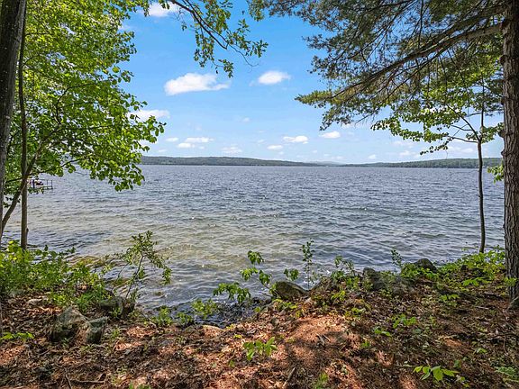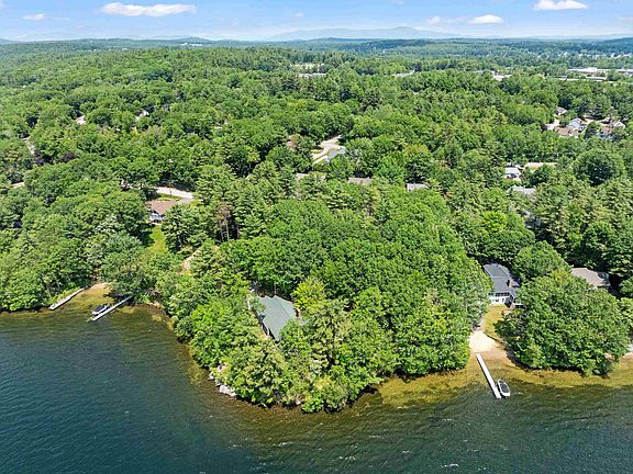 Welcome to an extraordinarily rare 1.6-acre point of waterfront boasting 360 feet of frontage with coveted east-to-west exposure across Lake Winnisquam's widest expanse. This is one of the most private and remarkable parcels available in the Lakes Region, completely secluded from the road, yet positioned to capture breathtaking sunsets year-round. The residence is thoughtfully sited for privacy, with an open-concept layout designed for relaxed lakeside living and effortless entertaining. The main level features a spacious first floor primary suite with dual walk-in closets, generous living and dining areas, and a beautifully appointed kitchen that flows seamlessly to a stunning mahogany wraparound deck creating a front-row seat to some of the best vistas on the lake. Function meets flexibility with a well-equipped laundry/pantry area and a smartly designed garage configuration: an oversized upper-level two-car garage with room for a small RV or boat, and a lower-level garage bay with direct water access, ideal for storage of water toys or future finished space. Upstairs, two expansive unfinished areas present limitless potential, create additional sleeping spaces, a private gym, studio, or home theater. With the added advantage of town sewer, you have the freedom to build out your vision without compromise. This is a legacy waterfront offering, private, rare, and brimming with potential, all set against the backdrop of Lake Winnisquam.
