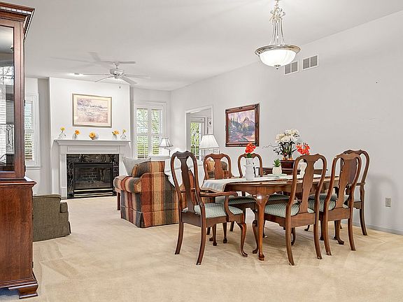 Premium one-floor living in this spacious ranch-style home. You'll love the layout with 9 ft ceilings on the main floor, 2 bedrooms plus an office or 3 bedrooms, and 3 full bathrooms. The combination living and dining room includes a gas fireplace and a wall of built-in lighted shelving. The large kitchen includes ample cabinetry and counter space with an eat-in area. There are two doors to the roomy deck, one from the kitchen and one from the primary bedroom. The private deck overlooks green space and a pond. The enormous finished walk-out basement has built-in workspace, includes one of the full bathrooms and has nice natural light from several windows. There have been many recent updates, including a new roof in 2017, replacement windows in 2010 and plantation shutters throughout. Convenient to highways, shopping, schools and parks. Schedule your tour today!
