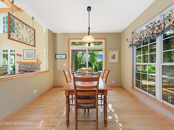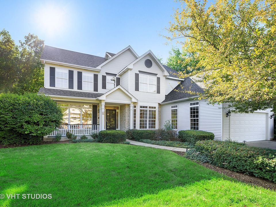Open floor plan in popular River Run subdivision is loaded w/custom detail. Kitchen boasts 42" maple cabinets, granite countertops & island. Two story family room has coffered ceiling & fireplace w/custom stone surround. Separate formal living & dining rooms. Private 1st floor den w/glass french door access to living room. Turned staircase w/hardwood flooring & oak railings. Master bedroom has vaulted ceiling w/separate sitting room which is perfect for nursery or use for gym/home office. Remodeled master bath w/dual vanities, custom shower & claw foot tub. Good sized spare bedrooms w/remodeled hall bathroom. 1st floor laundry. 9' 1st floor ceilings. Tons of custom millwork & trim throughout incl solid core 6 panel doors. No carpet, all hardwood flooring, 1st floor recently refinished. Updated lights fixtures incl front porch light w/camera. Deep pour basement w/rough-in is ready to be finished or perfect for storage. Newer high efficiency HVAC & water heaters. Private backyard w/deck & pergola + large brick paver patio w/seat wall & fire pit. Extensive landscaping w/full irrigation system. Great location, walk to park & downtown Oswego. Easy to shopping, dining, & highways.