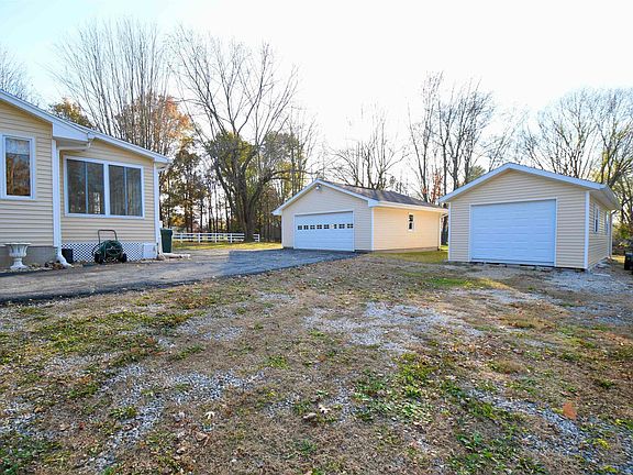 BEAUTIFUL RANCH OVER BASEMENT w/ 3BR, 2.5 BA, on 1.37 Acres in a private setting convenient to Hwy 37. Features include lovely kitchen w granite countertops, ceramic tile, large liv rm, family rm w gas fireplace, wonderful sunroom overlooking partially wooded back yard . Basement is totally unfinished and completely dry for the past 10+ years with tall ceilings ready for additional living space and 2-car Att. garage, PLUS a 24 x 24 Det garage, another 1 car drive-thru garage for small car or lawn equipment, a shelter/carport area ideal for outdoor entertaining w fire pit closeby. Car enthusiasts, this lovely property is for you! Ideal family home! Includes 1-yr home warranty!