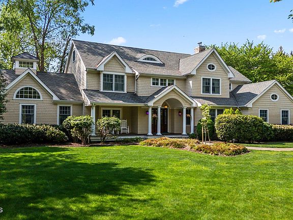 Dreams Do Come True! Prepare to be impressed by this stunning 6-bedroom, 5.5-bath custom-built Colonial, perfectly set back 160 feet on approximately 2 acres of beautifully landscaped grounds. A bluestone paver walkway and professional landscaping welcome you home to this one-of-a-kind residence. Step into a grand two-story foyer adorned with intricate custom molding and wide-plank hickory hardwood flooring that flows throughout the main level. Entertain in style in the oversized formal dining room featuring elegant cove lighting. The heart of the home is a chef's dream kitchen, equipped with a 6-burner Viking range top beneath a custom wood hood, Fisher & Paykel double-drawer dishwasher, microwave with warming drawer, and sleek slimline refrigerator. You'll also enjoy 42" custom cabinetry with crown molding, tumbled marble backsplash, granite countertops, a center island, and double wall ovens. A butler's pantry with prep sink, glass-front cabinetry, and wine cooler enhances your entertaining space.