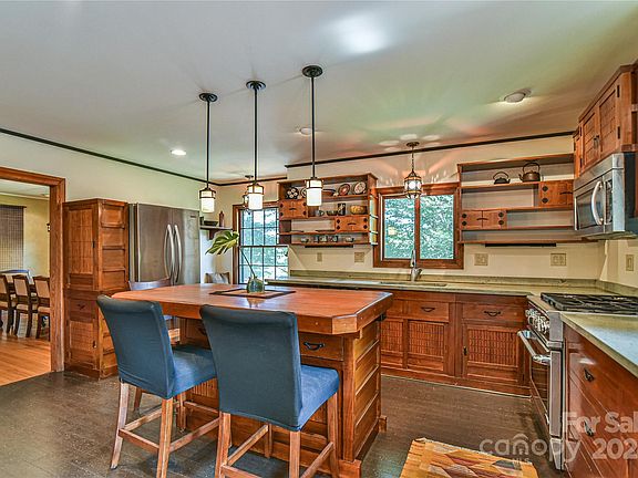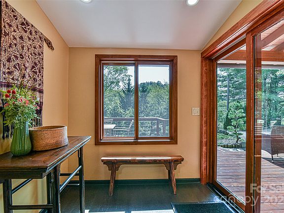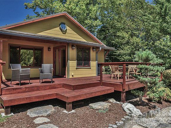 Inspired by life in Japan, this midcentury farmhouse’s beautifully updated features exude comfort and peace. Easy one-level living in main house includes original wood floors, crown molding, built-ins, wood trim, & doors; unique custom kitchen and updated baths, 3 generous bedrooms w/ large closets, spacious living room w/ gas stove fireplace, formal dining room, stackable laundry on main, carport, and loads of storage in walk-in basement & walk-up attic. Enjoy outdoor living w/ spacious decks & screened porch in a tranquil setting w/ Japanese gardens & bucolic country views. The guesthouse offers reclaimed barnwood floors, Sonos speakers in ceiling, kitchenette, loads of windows, shoji pocket doors, private patio, Japanese-style bath with indoor hot tub & shower room w/ garden views. New 4 BR septic, commercial grade standing seam metal roofs, bonus/workout room in basement. Spectrum Internet. No HOA. 25 minutes to Downtowns of Avl and Weaverville, 15 - 20 to W. Avl and Marshall.