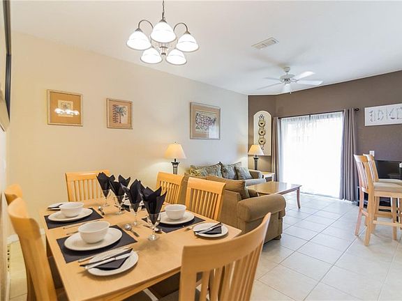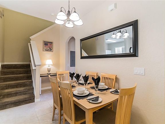 LOCATION, LOCATION, LOCATION! This well cared for 3 bed/3 bath comes fully furnished & conveniently located near the pool/clubhouse. The UPDATED kitchen is nicely equipped for short term rentals. Guest on-suite bedroom downstairs, 2 master bedroom suites upstairs. This home is spacious with open living space and an updated/freshly painted kitchen with ALL NEW stainless steel appliances installed November, 2017! Relax on the patio off the living area... enjoy the outdoors & Florida sunshine. NEW air conditioning unit in 2017 and new carpets in 2016! All fees paid to date, NO REACTIVATION FEES in this community since 2017. Regal Palms Resort is one of the most popular in the Disney vacation area or Orlando and Central Florida. Regal Palms is ~15-20 minutes to Disney property with amenities like: Two swimming pools at the clubhouse, one with slide, lazy river & zero point entry. There's a poolside tiki bar, sand volleyball courts, clubhouse with sports bar & restaurant, onsite reception, indoor & outside spa, fitness center with sauna & steam room, day spa & internet café. An indoor play zone similar to Chuck E Cheese with a terrific pirate theme. Full restaurant & bar. This man-gated community has so much to offer & walking distance to grocery store (Publix), many restaurants, ice cream shop, bank, pharmacy, emergency clinic & more! OPEN TO VIEW 08/10 after 11am check-out - 08/12 prior to 11am check-in. All sizes are approximate, please measure for accuracy.