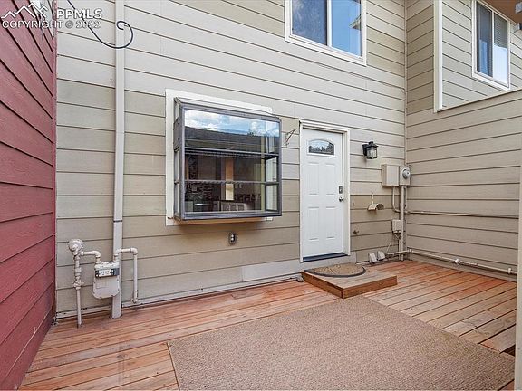 Beautiful townhome for sale in the Townhomes at Rockrimmon! This home backs to the interior open space providing plenty of light and warmth. The detached 2-car garage means no scraping in the winter. When you enter, the kitchen sits to your left and features granite countertops and updated appliances. The living and dining area has original hardwood floors and a working fireplace. Upstairs is the large Owners bedroom, remodeled bathroom, and second bedroom. The basement has very large bedroom which could also be used as flex space, a 3/4 bathroom with laundry, and utilities. Updates since 2020 include: AC (2022), Furnace (2021), Water Heater (2020), Appliances (2020), Sliding back door with inset blinds (2021), all interior doors (2020), master bath remodel (2020), upstairs flooring and carpeting (2020), and garage door opener (2020). The HOA replaced the roof in 2021. The community features include tennis courts, pool, and open space. Nearby to restaurants, easy access to I-25, Ute Valley Park, D20 schools, and more!