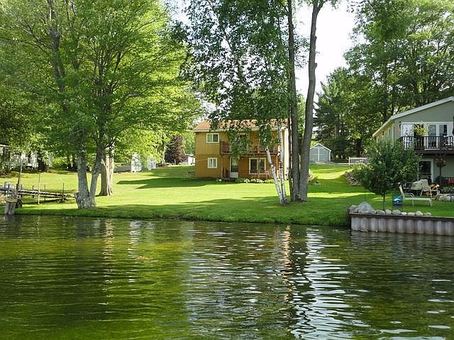Ideally situated on 114 ft of lakefront on all Sport Shingle Lake, has 3 bed 2 bath with upper and lower covered deck to enjoy morning sunrise & evening sunset. Unique upper deck is off the master bedroom overlooking the lake for Peace and Tranquility, upper level has 1/2 bath and laundry. Spacious kitchen & dining has laminate floors both rooms has great view of the lake. Has big yard for fun & games and leads to the natural lake shore and sandy bottom beach to enjoy swimming, fishing, boating, skiing & snowmobiling or just watching the Loons as they pass by enjoying the water. Fulfilling your dream of living on the water, this is it!