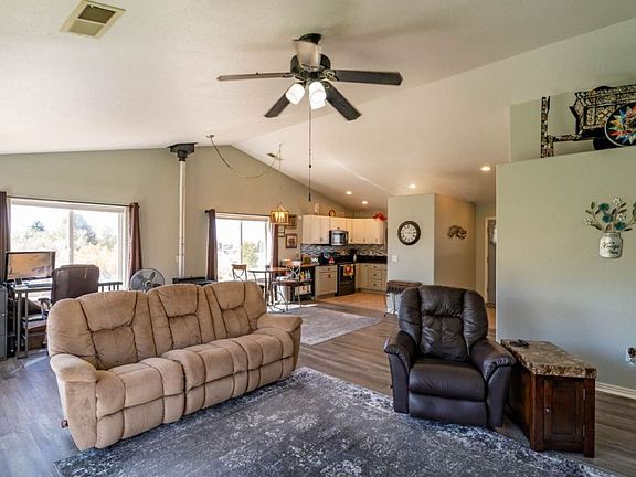- Interior Features: Flooring- Laminate, Flooring- Wood, Flooring- Tile, Window Coverings, Vaulted Ceilings, Pellet Stove, Ceiling Fan(s), Blinds