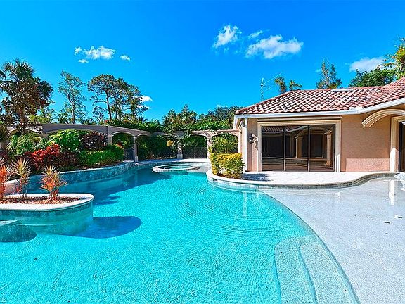 ** $100,000 PRICE REDUCTION ** EXQUISITE PARKLIKE SETTING FOR THIS UNIQUE HOME IN COLLIER WOODS (West of Collier) on 2.73 acres. Access the property from the front or through the automatic gates at the back (situated between 2 main roads). There is a huge 8450 sq ft concrete pad near the back of the property (please note it is clear now although overhead photos show trucks, etc). RESORT STYLE HEATED POOL and SPA (1500 sq ft!). 4 bedrooms plus den (which can be a 5th bedroom but no closet), family room, 4 baths, 4 garages. Open plan design wraps around the pool and spa you will rarely see in a private home. Water features and colored fountains in the pool will delight you at night while you sit around the outdoor fireplace. Travertine, wood and marble floors, crown molding throughout. The gourmet kitchen has an 8 burner gas stove, Bosch dishwasher, and a wine cooler. 500 gallon propane tank also heats the water system. 2 new ac units installed in 2020. Gas fireplace in main living area. Master bath has a free standing jacuzzi, panoramic windows looking out onto a private garden. Triple garage at the front plus a 4th garage at the side of the house. This is a very unique property just waiting for your own personal touches!