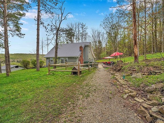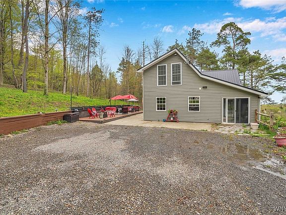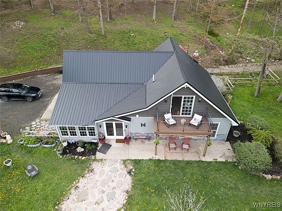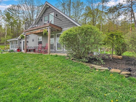 Welcome to 4320 Block Rd that offers upgrades and serenity on a sprawling wooded 10-acre lot. This completely remodeled 3 bedrm 2 bath residence offers modern elegance and the tranquility of nature. As you enter you'll be greeted by a bright and airy open concept kitchen / living space with high ceilings and windows that flood the home with natural light. The stylish changeable cabinetry from IKEA, stainless steel appliances and a generous island are perfect for entertaining. The brand-new primary suite and loft boasts a stunning ensuite bath w modern fixtures and finishes; the primary bedroom provides your own balcony for morning coffee! For the DIY enthusiast, this home offers a detached 2 car garage and large workshop perfect for storage and projects! For the nature lover, this home surrounds you in woods, hiking trails, a small pond and is close to Ellicottville and Springville! Square footage per tax records is incorrect due to the second story addition.