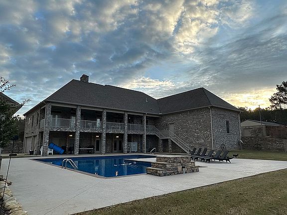 Finished basement, with full kitchen and movie room. 2 separate 3 car garages. Large pool, pool house with 3/4 bath, outdoor kitchen. 50x80 outbuilding constructed of split face block. Main home is 3,400 square feet heated and cooled. Large wood burning fireplace on main level and in finished basement. The yard is sprinkled with water coming off well. House water is from utility company.