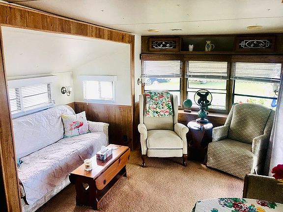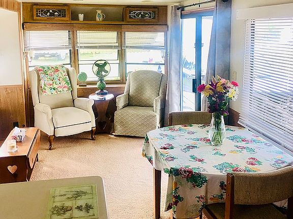 Quaint 1 Bedroom 1 Bathroom Park Model with attached carport and Florida room with back storage room Private backyard area Includes furnishings and household contents Located in Southern Ducks RV Resort