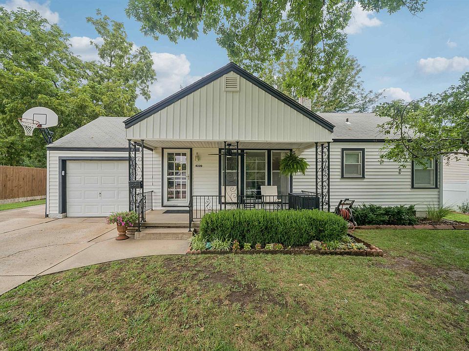 ***Don’t Miss This Opportunity!*** Welcome to 4320 E Kinkaid, Wichita, KS—a lovingly maintained home in east Wichita! This well-cared-for property offers 3 bedrooms, 2 bathrooms, and a 1-car-attached garage plus an oversized detached garage/workshop with concrete floors and electricity—perfect for projects, storage, or hobbies. From the moment you arrive, you’ll be charmed by the spacious front yard with mature trees and an inviting front porch—the perfect place to relax and enjoy your neighborhood. Step inside to find laminate flooring throughout, a bright formal living room with large windows, and a spacious open-concept kitchen, dining, and family room featuring an electric fireplace with blower for cozy fall and winter evenings. The kitchen comes fully equipped with all appliances included. Enjoy outdoor living with a large patio, a wood privacy-fenced backyard, and a garden shed with wood floors for even more storage. With over 40 years of loving ownership, this home is move-in ready and waiting for you! Explore the property’s dedicated website for more photos, an interactive map, and a full floor plan. Schedule your private showing today!
