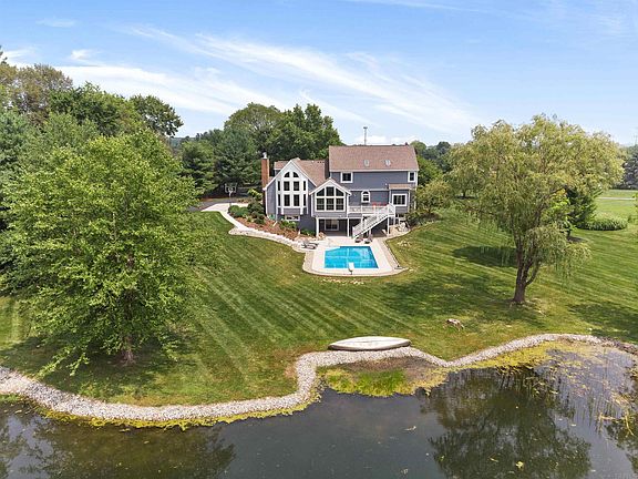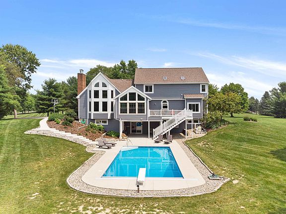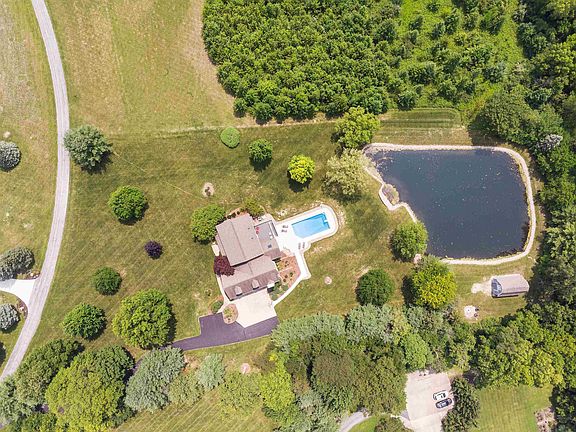 Welcome to your dream oasis! Nestled on a sprawling nearly 5-acre lot in Aboite, this magnificent property boasts a stunning home, complete with a swimming pool, offering serene views overlooking a glistening pond. Perfectly blending luxury, comfort and nature, this remarkable residence is the epitome of sophisticated living. The location is truly unbeatable, within easy reach of Fort Wayne amenities, including the Fort Wayne Trails system just minutes away. The exterior of this property is truly a sight to behold. Lush greenery surrounds the home, providing a sense of privacy and tranquility. The three-season room leads to the pool area boasting an upper trex deck and lower patio area, both less than 5 years old. This picturesque scene creates the ideal space for hosting gatherings or simply unwinding while taking in the panoramic views of the fully stocked pond. Step inside, and you will find a thoughtfully designed interior that exudes elegance and warmth. With 4 spacious bedrooms, there’s plenty of room for family and guests along with an owners retreat you only dream of with a tiled shower, dual vanities, and a second laundry room. The home’s interior is accentuated by lovely built-ins, numerous floor to ceiling windows, and gorgeous engineered hardwood floors, adding both character and functionality. The formal dining room sets the stage for intimate dinners, while the updated kitchen, complete with a large granite island, extensive cabinetry and counter space, double oven and gas range, is a culinary enthusiast’s delight. The great room is an open and welcoming space, perfect for relaxing evenings by the fireplace hosting memorable get-togethers with loved ones. Another highlight of this remarkable property is the expansive loft area offering limitless possibilities for recreation and play. The masterfully crafted walk-out basement adds to the charm, providing convenient access to the outdoors along with a canvas for billiards, movies, gaming and a workout space with full bath. Whether you seek a peaceful retreat or an entertainer’s paradise, this property fulfills all your desires.