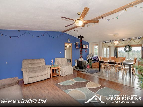 Welcome home! This wonderful Roy home offers three large bedrooms, two full baths and is perfectly situated on a peaceful fifteen-acre lot with stunning views of the Nisqually River! This is truly a nature lover's paradise! As you enter the home you'll find an open concept living space with high ceilings, windows providing tons of natural light and beautiful wood floors. As you move throughout the home you'll see the large dining room which is perfect for entertaining, open kitchen with breakfast bar and plenty of storage space. Off of the kitchen you'll find the master bedroom which also includes high ceilings and windows providing not only natural light but a wonderful view. The master bedroom has a spacious on suite master bath that includes a hot tub! As you exit the home to the back deck, you'll likely see deer, elk, birds, bald eagles and other wildlife also enjoying the peace tranquility of the area. Outside there are amazing views from every angle. The deck on the back of the house is perfect for entertaining; imagine yourself hosting the next summer barbecue with this fantastic view! Also on the property is a large circular driveway, a large shop with space to park two vehicles and tons of storage space and plenty of room to park an RV. You wont want to miss your opportunity to own this little piece of tranquility! Call our team today to schedule a private showing! 3920 Harts Lake Rd S, Roy, WA 98580.