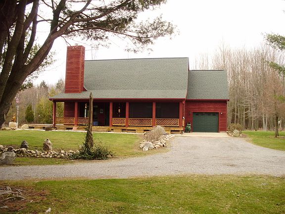 Beautiful serene location that allows you to have your cake and eat it too. This newer custom built home is situated on 60 acres of diverse land adjoining state land, with a mix of woods, open ground, some wetlands, a private 1/2 acre aerated pond, deer blinds and underground sprinkling. The home features: a lovely sun room, attached garage, solid surface counter tops, hickory cabinets with soft close drawers, tile floors, wood fireplace, security system, a walk in closet off the master bedroo m and a whirlpool tub in the upstairs bath. To top it all off there is a plenty of auxiliary building space: 30x60 pole barn with electric and concrete floors and several additional attached wings. Please call for your personal showing.