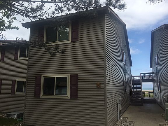 Lake Huron beach front 2 bedroom, 2 bathroom with a detached 1 stall garage. Unit is located on a shared 800 foot sandy beach with awesome views of Lake Huron. Huron Sands Condominiums are located near the pier head of the AuSable River and within walking distance of downtown Oscoda.