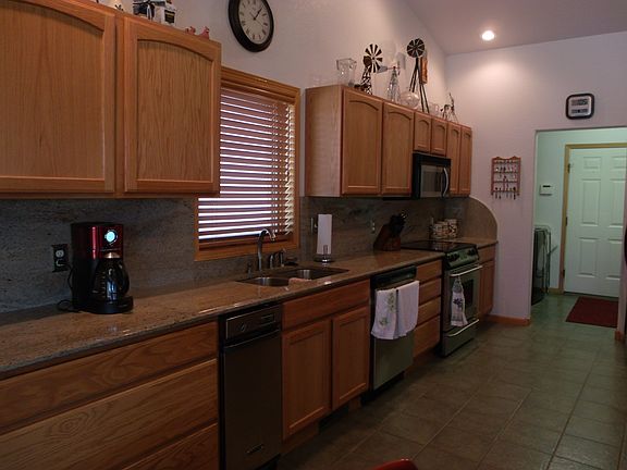Elite home features vaulted ceilings through-out the entire main floor. Large open floor plan with gas fireplace separating the living room and eat-in kitchen. There is plenty of counter space in this beautiful kitchen with granite counter-tops and full backsplash. Tiled floors in kitchen, laundry room, and bathrooms. A large master bedroom with walk-in closet and the luxurious master bath features a Bain Ultra jet tub for 2 with heated back rests. Custom tile in this bathroom and beautiful walk in shower. There is a second bedroom and full bathroom on the main floor as well as an office/den (it could easily be converted to a 3rd bedroom). The lower level has 2 more bedrooms and a full bath with his and hers sinks, along with More than ample storage off the utility room, that is completely finished. This daylight basement has a huge family room, with wet bar, and gas fireplace, that is large enough for all your entertainment needs. There is an alarm system for the entire house. Central air, sprinklers, RV parking, large wrap around deck, oversized 3 stall garage, and much much more!