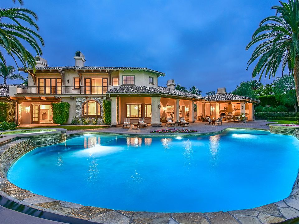 Located on the spectacular "street of dreams" in guard-gated Rancho Pacifica, this unparalleled custom estate is home to most everything today's discerning home buyer desires. Crafted in 2005, the sprawling residence extends approximately 12,066 square feet, allowing ample room for 7 ensuite bedrooms, 9.5 baths, a luxurious guest house, dedicated office with handsome paneling, a large wine room, and versatile media/game room. Lofty open-beam wood ceilings add warmth to most every occasion, from formal affairs to spur-of-the-moment gatherings, with stone flooring, elegant lighting fixtures, new paint, new carpet, and sweeping archways complementing the open design. A family room with pub-style wet bar and pocket doors to the loggia opens to an opulent kitchen appointed with granite countertops, stainless steel appliances, an island, and cabinetry that is on par with fine furniture. Three bedrooms are located on the main level, with 3 more upstairs. Dual baths and expansive walk-in closets complement a sublime master suite with exercise room and spa bar, and a lounge/game room offers a great place to relax and play on the second floor. Fully fenced and displaying an impressive entry gate, the all-usable 1.31-acre homesite is graced with outstanding mountain, canyon valley and light views. Discover a sensationally sized pool with Baja shelf and spa, paver decking, a motorcourt with access to 9 garage spaces, a play yard, and a festive cabana with fireplace and grill station. Rancho Pacifica offers a location that is advantageously close to beaches, Del Mar Racetrack, equestrian amenities, exquisite dining, shopping and leading schools.