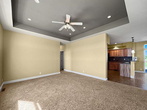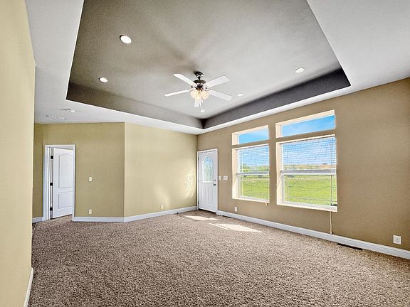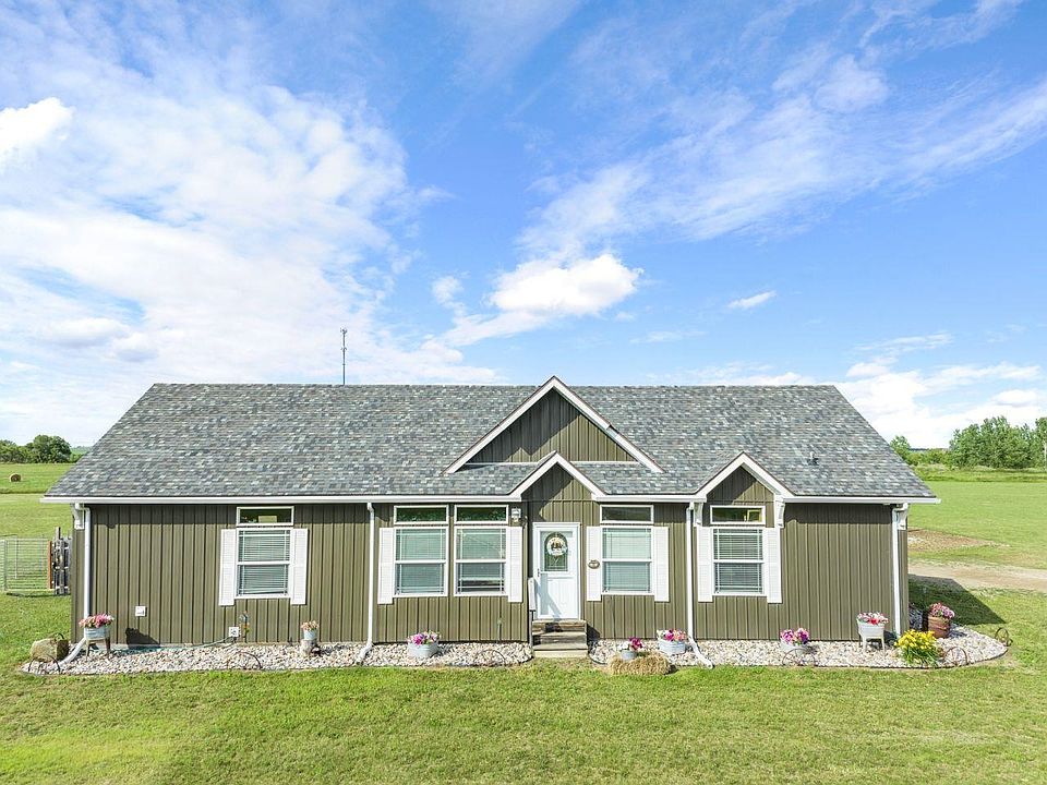 Welcome to beautiful Krumwiede Acres in Velva ND. This beautiful 3 bed 2 bath 2014 modular Copper Creek home sits on a large 7 acre corner lot, with an established garden space and big mature fruit trees (Chokecherry, Sand Cherry, Apple, and Plum) around the entire border. Not to mention a concrete pad with hookups for your RV. Have you been looking for the acreage for your animals or family to grow all close to the amenities of a small town? Then this home is perfect for you! Attached is a massive 3 stall heated garage with a brand new 80,000 BTU propane heater, and the option for in-floor heat that is plumbed in and ready for you to finish and utilize. The garage offers a storage room that leads to a fenced in dog run for your furry friends. Inside the home boasts beautiful multi-level ceilings, ample natural lighting, and a large open concept kitchen with plenty of storage. Looking for a ranch style home with easy accessible laundry and a mud room right off the kitchen keeping all the outside elements literally at the door, don't worry we got it! The master provides a beautiful en suite with an XL walk-in closet. In between the two back bedrooms you have an office space perfect for people who may work from home or a family who has kiddos who need a homework/study space. The living room welcomes the cold days of winter with a large gas fireplace to cozy up to, or a XL porch off the sliding glass door to enjoy those warm summer nights. This home really does have it all! Sitting on a 4 ft cement wall with a wood bearing wall and slab poured base. The propane has been filled making this home MOVE IN READY!