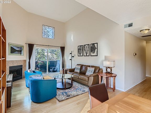 Prime upper, corner, bright unit w/ high ceilings. Updated kitchen w/granite counters, stainless appliances, lots of cupboards. Bamboo floors (except bedrooms). Primary bedroom w/ closet organizer. Sunny deck; sit & read among your potted plants. Easy walk to the river, Willamette Park, eateries, close to S. Riverfront, busline. Walk/Bike score 75/73! One deeded/secured parking space + one reserved space for guests! Storage unit included. Active HOA Board.