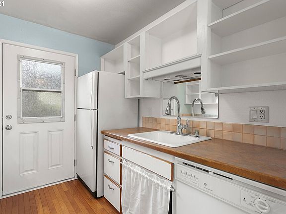 Wonderful Ground Level Condo in Convenient SW Portland Location! $5,000 credit towards HOA dues! Quiet community in the trees w/pool & $3 million in renovations. Gorgeous oak hardwoods! New carpet! Open feel in living room w/high ceilings. 2 bedrooms plus an adorable remodeled bathroom! Brand new refrigerator & dishwasher. New pellet stove, windows & slider. New cedar deck w/custom gate & nature views. End unit w/additional light. Washer/dryer included. Easy access to I-5 & Multnomah Village.
