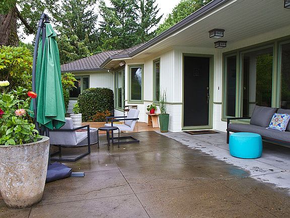 This private mid century ranch on .54 acres is in a serene location sitting above the road with beautiful landscaping of mature trees and shrubs. Easy ONE level living with 3 bedrooms plus a den, great floor plan and peaceful outdoor space. Large yard, hardwoods throughout, connected living & dining rooms, remodeled kitchen & all new Marvin wood-clad windows. A peaceful retreat!