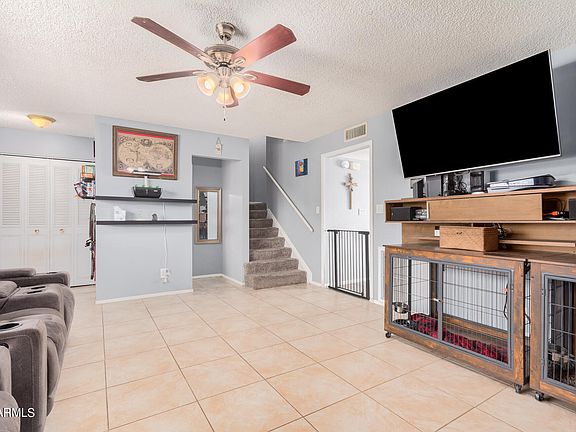 Discover the charm of this delightful townhome, ideally located near bus stops and parks! The living room welcomes you with a cool palette and durable tile flooring, creating a refreshing atmosphere. The eat-in kitchen features granite counters, sleek flat panel cabinets, built-in appliances, a pantry, a peninsula with a breakfast bar for casual dining, and sliding doors leading to the backyard for seamless indoor-outdoor living. The bedrooms are adequately sized and carpeted, offering a cozy retreat after a long day. Outside, you'll find an open patio for outdoor dining and a storage shed for your belongings. This value won't disappoint!
