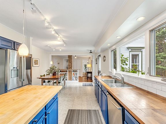 Nestled on Atherton Ave, just behind Washington St, this enchanting Victorian single-family home offers 3.5 bedrooms and 2 baths. Elevated from the street and surrounded by lush trees, it feels like a private oasis. Enter through a Japanese-inspired gate into a vibrant garden, then step into a classic yet modernized kitchen with ample counter space and a large picture window overlooking the serene patio and green space. The first floor boasts a living room, dining room, and bedroom with high ceilings, hardwood floors, ornate moldings, central A/C and a bay window. Bonus area includes a full bath and laundry, with custom built-in storage under the stairs. The bright & sunny second floor features two sizable bedrooms, a home office/bedroom, and an updated bathroom. A separate bike storage space caters to avid cyclists, 2 parking spots and there's abundant storage in the basement. Minutes to Roslindale Sq, Commuter rail, shops, restaurants and transportation.