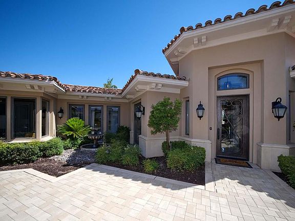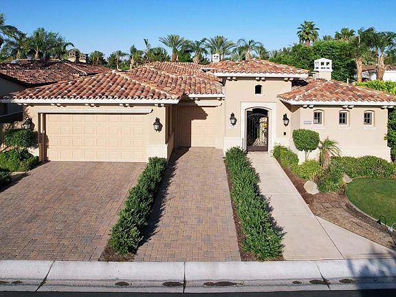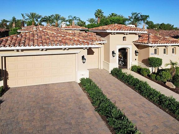 Secluded within the private Toscana Country Club in prestigious Indian Wells, California, this beautiful Italianate home has many special touches including a dramatic courtyard with fireplace that can double as an outdoor living room. Inside, upgraded details include a modern fireplace with floor-to-ceiling mosaic surround, wetbar with double waterfall-edge countertops that matches the kitchen and island, marble-like gloss flooring, and more.The large guesthouse with sitting room and bathroom, office, and dining room all feature large windows that overlook the courtyard that creates a light and open feeling to the home. To take advantage of the amazing views of the Jack Nicklaus Signature Course, oversized pocket doors lead out to large covered verandas and a seamless corner window graces the wet bar area.A stunning grotto is the centerpiece of the gourmet kitchen that offers a waterfall-edge island with built-in breakfast bar, butler's pantry, and Sub Zero Wolf appliances. Included in this remodeled 3,724 sq. ft. home is a luxurious master bedroom and bathroom, and a garage for two cars and one golf cart.