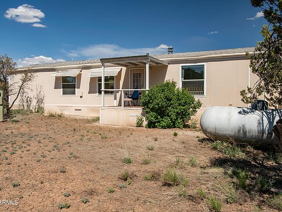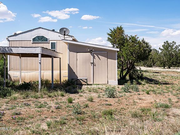 Welcome to the beautiful area of Seligman, Arizona! This fantastic real estate opportunity presents a charming 2-bedroom, 2-bathroom single wide mobile home, that has a brand-new roof, nestled on an expansive 2.55-acre lot. As you step into this clean and well-maintained home, you will immediately notice the comfortable and inviting atmosphere. The open floor plan seamlessly connects the living room, dining area, and kitchen, providing a spacious layout for relaxing and entertaining guests. Natural light streams through the windows, highlighting the cozy ambiance of the interior. Both bedrooms offer a peaceful retreat, perfect for unwinding after a long day. The master bedroom features an ensuite