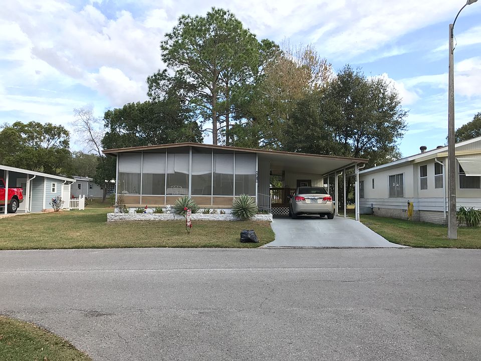 Located on an interior lot, this 1979 Nobility home features a kitchen with pantry, master suite with two closets and a step-in shower, and a large hall tub bath. Attachments include front screen porch, utility room with washer and dryer, and carport with access ramp. Some furnishings are included. The central air unit was installed in 2011 and is well maintained. The seller has moved to her new home and has priced this one for a FAST SALE! Similar homes nearby are priced at double the price of this one. SO, BETTER MOVE FAST ON THIS HOME!!! Lot Rent: $531.07(Includes water, sewer, trash, lawn(mow and edge), and numerous amenities!