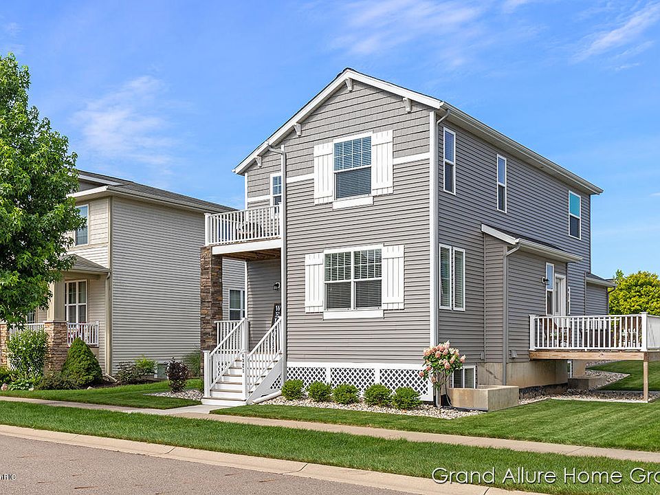 Stunning Cobblestone Ravines home just hit the market in Kentwood! This new home features 3 beds and 2.5 baths. The main floor features a living room, kitchen, dining room, 1/2 bath, and laundry. The beautiful kitchen comes with a refrigerator, stove/oven, microwave, dishwasher, disposal, and pantry. Open concept with a large kitchen island and space for entertaining. Upstairs you'll find a master bedroom with a walk-in closet, bathroom and balcony. Lower level has a fully finished space, along with an unfinished space that's plumbed for another bathroom and 4th bedroom. Located within Cobblestone at the Ravines, this home features the convenience of association amenities including a pool, playground and quiet neighborhood. At Seller's request, please follow CDC guidelines in this home.