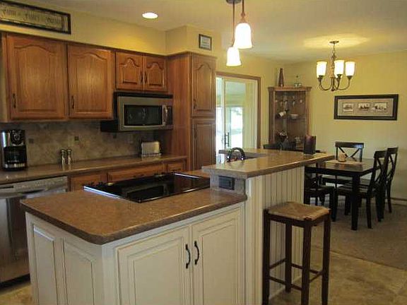 Hard to find: In town acreage with county taxes! This house is absolutely stunning as everything has been redone. The following major mechanicals have been done in past 4-6 years: furnace, a/c, water heater, flooring, paint, siding, fixtures, well (holding tank and pump), stainless steel appliances, roof w/ soffits and eaves, gutter guards on the whole house, and almost all windows have been replaced. The kitchen was renovated in 2009 w/ large ceramic tiled flooring, center island w/ breakfast bar, counters, sink & faucet, backs plash & more! Both bathrooms have been renovated w/ custom walk tiled shower with glass doors. New 4 seasons room addition with walls of windows completed in 2007.Detached heated garage/shop (26x30) accompanies the already oversized 2 stall attached garage. The complete list of upgrades and updates will be on MLS attachments. The lot is a large private .99 acres & complete w/ cherry tree!