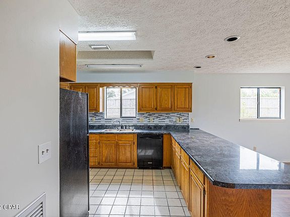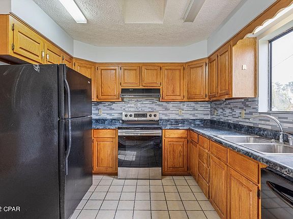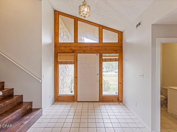 Plenty of room to grow with this 2263 sq. foot home consisting of 4 bedrooms and 2.5 bath and sitting on almost 1/2 acre. The split level home is expansive and can accommodate a large family. Spacious great room with 14 ft ceilings, a wood burning fireplace and natural lighting. Large kitchen with breakfast bar overlooking the formal dinning room. Breakfast bar and abundance of cabinetry. Separate laundry room and 1/2 bath on first floor. Second floor consist of 4 large bedrooms and walk in closets. Wood plank flooring throughout and tiles (no carpet). Two attached garages for 3 cars, where smaller one car garage can be fully enclosed for a bonus room etc. Plenty of storage with additional room and workshop. Great location close to Highway 231 and Lynn Haven.