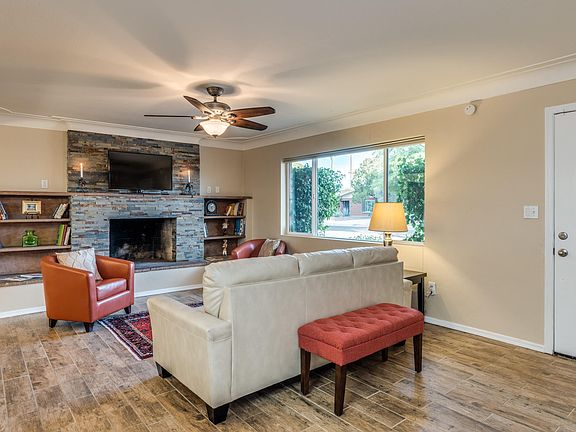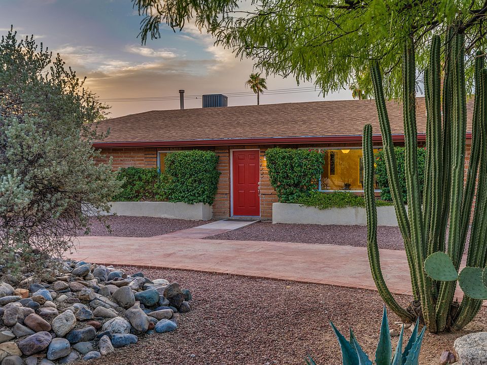 * VIEW VIDEO: https://www.facebook.com/pg/Hawaiintucson/posts/?ref=notif * UPDATED & MOVE IN READY! This Stunning mid-century burnt adobe home features 4 bedroom/3 bath & located in Poets Square neighborhood. It has loads of cosmetic and mechanical updates. Semi-open concept w/split floorplan and huge Master Suite w/fireplace. Beautiful & detailed coved ceilings, wood-burning fireplace in LVRM, tile throughout & carpets in all bedrooms. Double pane windows, ceiling fans, honey-comb custom shade mini blinds, fresh paint. HVAC 2018; water heater 2019; W/D 2016. Backyard faces North, extra-wide covered patio, citrus trees, Tuff shed, and auto-irrigation sys. The huge backyard can accommodate oversized truck, an RV, or even a small pool. Centrally located and minutes away from Banner hospital, U of A, Downtown, TMC, schools, shopping, restaurants, bus line.