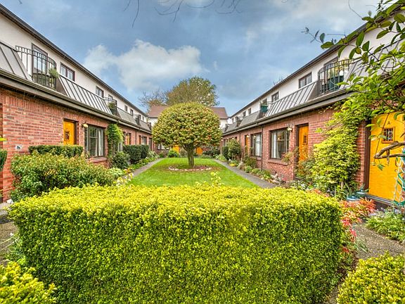 Historic community of vintage 1929 condominium homes in the dynamic Fremont neighborhood. Step back in time! Original architecture has been thoughtfully refreshed thruout: Hardwoods, classic coved arches, vintage doors, door knobs, stained glass; classy faux frplc. Very chic kitchen features Martha Stewart cabinets, slab granite counters. Master with balcony. Grand courtyard setting, gated entry; patio in back for BBQs. Bicycle storage, too. Super walkability: Cafes, transit just a block away.