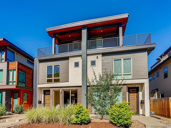 Live in the heart of Berkeley's hot Tennyson district! This well-appointed contemporary home features open tread stairs with black powder coat rail. Chef's kitchen with 12-foot granite island and wall oven. White oak hardwoods on main AND all upper floors! The master suite is your private retreat, complete with five-piece bath, modern sculptural tub, and dual closets. On the top floor, you'll find a cozy den with fireplace, space for working from home, and an energy efficient mini-split for separate heating/cooling zone. There's even room for a full size refrigerator next to the wet bar. Step out onto the warm wood tile wraparound deck, and enjoy sunrise to sunset outdoor zen time. Pre-wired for outdoor sound. Rare two huge full bedrooms in basement, plus recreation/media nook and lots of storage. Expansive main level patio provides great indoor/outdoor connection, with the best in low maintenance living. Strike up the ambience with the living room fireplace + built-in patio firepit within sight lines. Outdoor enthusiasts will enjoy being a few minutes from Berkeley Lake and Dog Park for running. Convenient west-side access to I-70 for all of your mountain adventures. Glass garage overhead door opens to patio, in case you want to convert the 2-car garage into a workshop, gym, or hobby haven (garage has an epoxy floor). Xeriscaped front yard & low maintenance patio = easy lock & leave second home. Staging features local art by renowned painter Gabrielle Shannon. Many furnishings, art, and accessories are available for purchase.