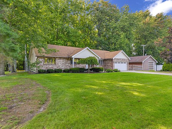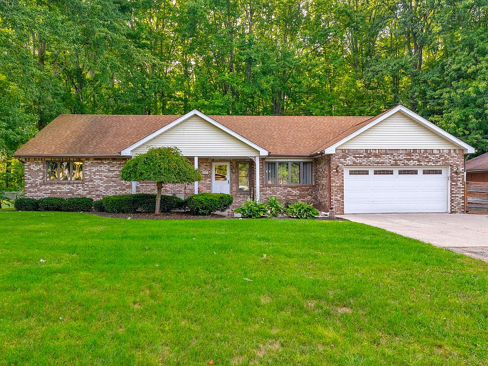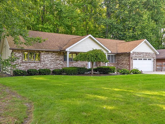 Welcome to this move-in ready, expansive brick ranch on a beautiful lot! Enter into your new home under a covered front porch and walk into an open concept living room and kitchen area. This home offers a modern kitchen with stainless steel appliances and leads into a bonus family room featuring large windows that offer plenty of natural light and a serene backyard view. A perfect space for entertaining! Open the back door and head out to a shaded backyard that offers a deck, mini golf, and fire pit. Step into your private side yard, perfect for a pet. The pole barn is a great space for a workshop or additional storage, this home has a lot to offer!