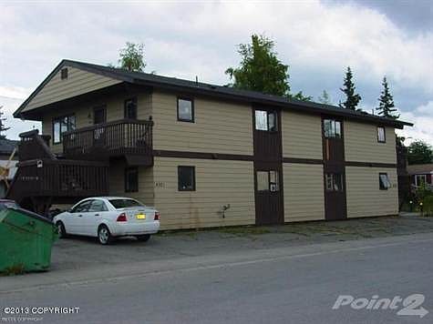 Incredible Anchorage four-plex investment opportunity. Situated on a corner lot near shopping and JBER. This 4 unit residential income property has been recently updated in all kitchens and bathrooms. All units are 2 bedroom, 1 bath and feature washer and dryer within each unit. All units have a direct vent furnace with natural gas recently installed as well as supplemental baseboard heating.