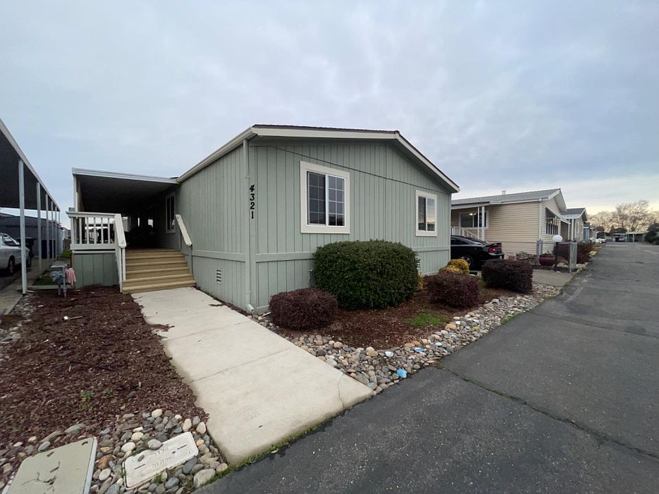 Welcome to this charming updated HOME in Dry Creek Mobile Estates. This HOME is move in ready with all you will need. 4 Bedrooms/2 baths with a large main bedroom/bath and 2 walk in closets. The kitchen/family/dining areas are open concept with stylish features and plenty of room for entertaining. The DECK is spacious for your time relaxing outdoors. Need room for storage or your MC/toys? The large storage unit with roll up door fits the bill. Newer roof and appliances with serviced heating and air! So much to offer in this ALL AGE PARK come and take a look and get ready to move!