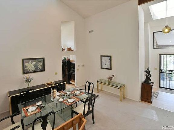 This extremely lovely, spacious unique contemporary styled home is located in the prestigious Cherry Creek Racquet Club subdivision only steps away from the Cherry Creek State Park and Reservoir. Top of cul-de-sac in best area of CCRC. Light and airy living areas with 18 ft. ceiling in dining area. Mstr. bedroom with mirrored closet doors, 5 piece mstr. bath, kitchen and dining room on main floor for easy living, refinished wood floors in kitchen & entry, two fireplaces, 5 skylights, 3 decks plus covered patio makes for gracious living. Large backyard. Private subdivision with limited traffic since only one main entrance into subdivision. Near shopping plus Cherry Creek Schools.