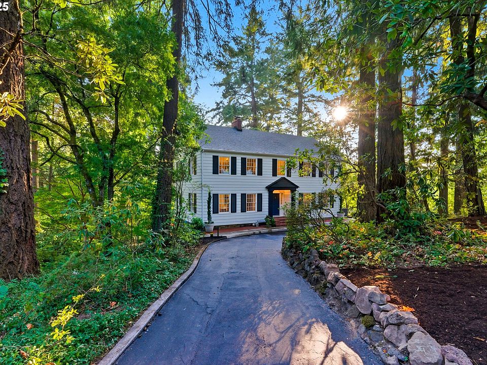 Welcome to 4321 SW Dosch Rd, a rare forest sanctuary nestled on 1.3 acres of serene Pacific Northwest beauty. Perfectly positioned between the coveted SW Hills of Portland and Beaverton, this one of a kind property offers the tranquility of a private woodland retreat with the convenience of city access just minutes away.Set back from the road, the home welcomes you with a roundabout driveway and an attached two car garage - a thoughtful feature that makes everyday comings and goings effortless, especially for busy households.Originally built in 1941, this classic Colonial has been completely rebuilt from the studs up, blending timeless architectural charm with modern construction and new systems throughout. Inside, you’ll find approximately 3,500 square feet of beautifully restored living space, including three spacious bedrooms and three full bathrooms.The heart of the home is the expansive great room, designed for both entertaining and cozy family moments. Large windows and French doors flood the space with natural light and open to an outdoor patio that feels like an extension of the living room—perfect for hosting or simply enjoying the peaceful surroundings.Step outside and be embraced by towering native old-growth trees that create a natural cathedral canopy, offering unmatched privacy and a daily connection to nature.If you've been searching for the rare combination of location, land, and luxury, this move-in-ready home delivers the peace of mind of a new build with the character of a heritage estate.Don’t miss your chance to experience this private woodland retreat in the heart of Portland’s westside.